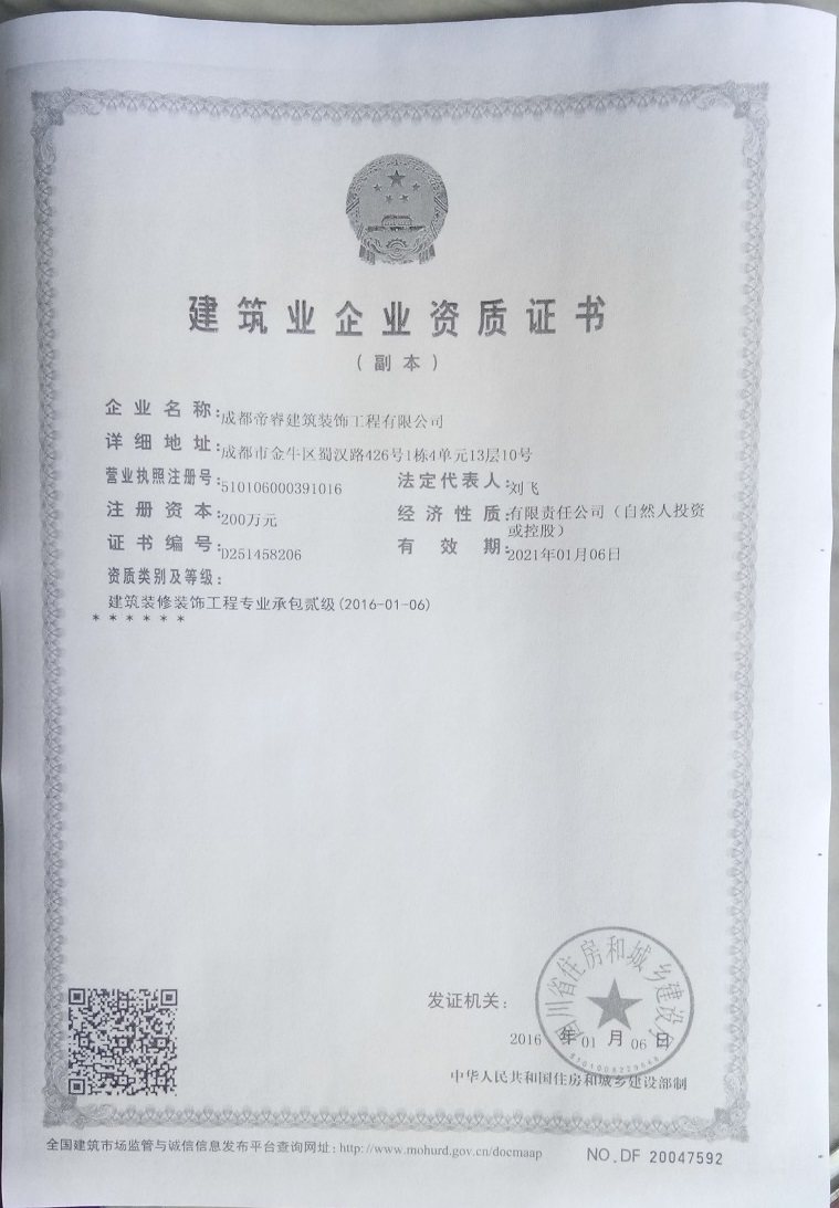 “帝睿裝飾”是一支飽含激情的成都裝修公司。公司擁有獨立并且專(zhuān)業(yè)的工裝裝修團隊和完善的工程管理機制。在適用性方面我們更多考慮的是商業(yè)盈利模式、文化背景、風(fēng)格喜好、實(shí)用性等,并在這方面基礎之上針對性的對不同空間做設計上的靈活運用,真正意義上做到盡善盡美;從施工作業(yè)和現場(chǎng)管理角度考慮,所有技術(shù)和管理人員持證上崗,確保所承接的工程全部都有序順利開(kāi)展。與此同時(shí),帝睿裝飾還另實(shí)行24小時(shí)跟蹤服務(wù)機制,并承諾:“工程不轉包!”。